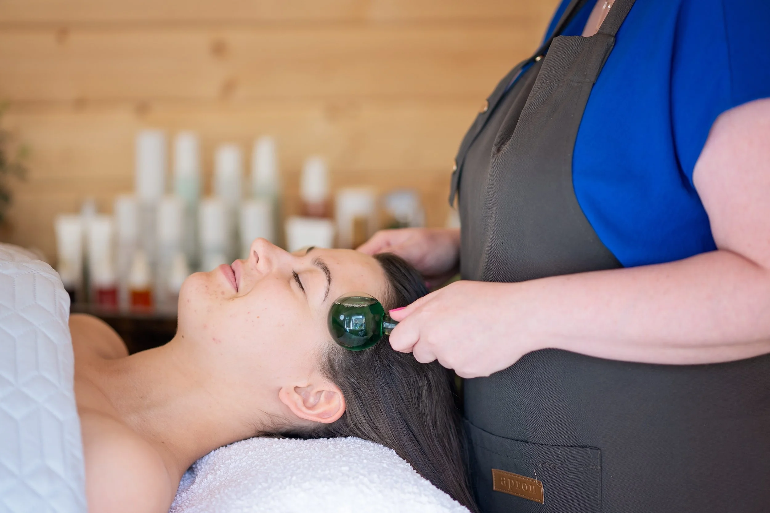 Intentional touch (from warm massage to cooling globes) to gently ease tension